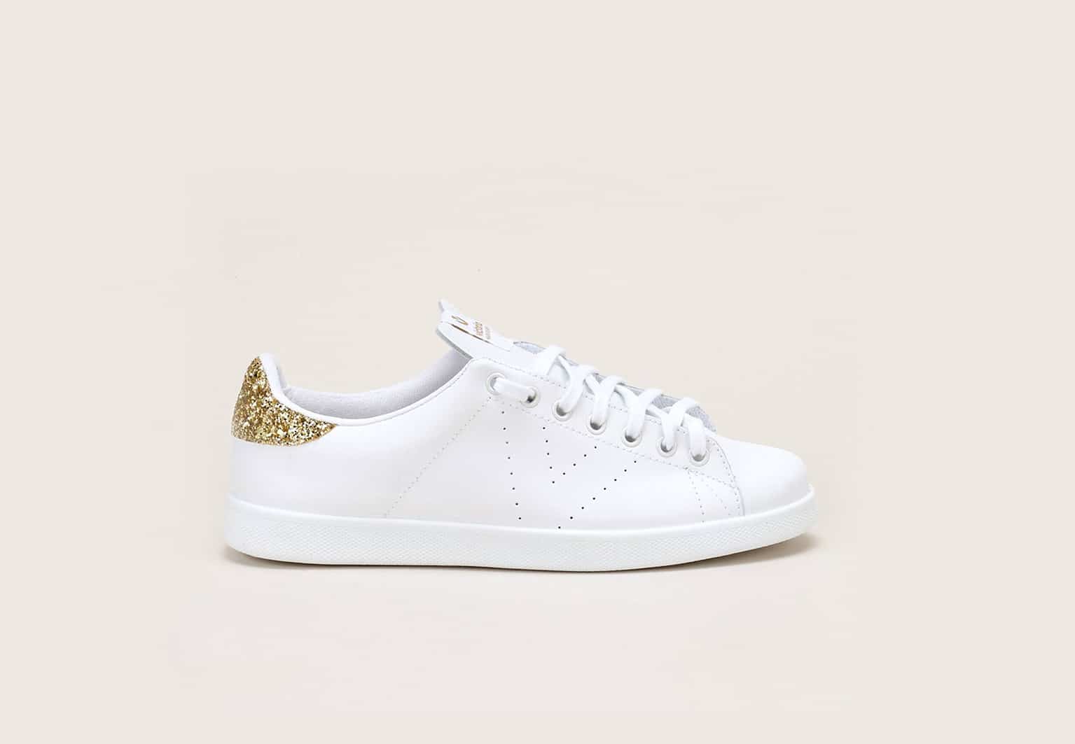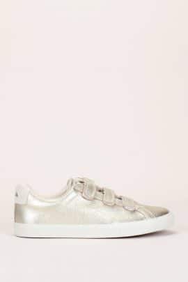 Les tennis Veja blanches à paillettes (110€) renversent les codes. Oui, même sur une robe en dentelle !